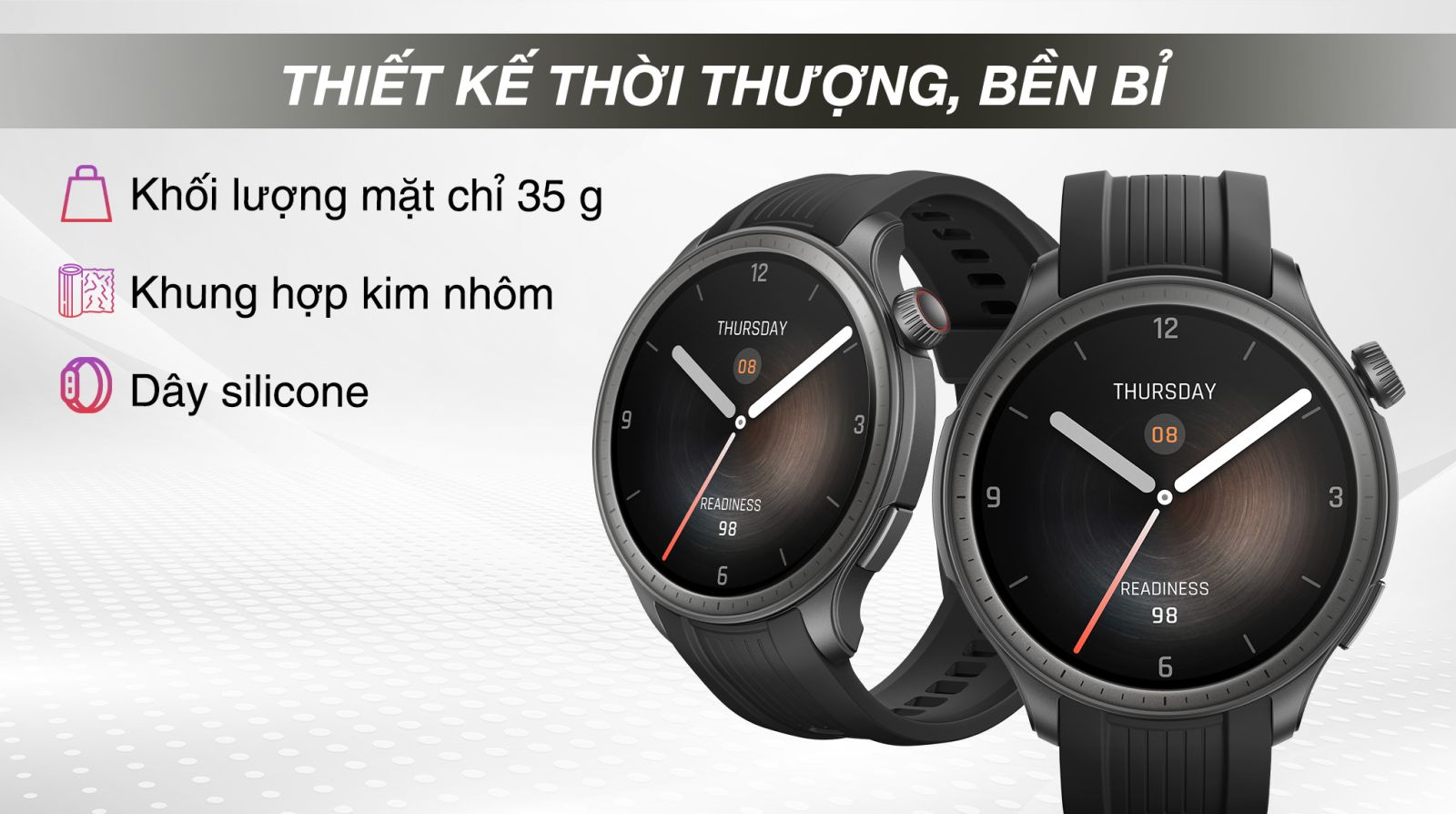 Amazfit Balance 2 sở hữu thiết kế mặt tròn hiện đại với kích thước 47mm, trọng lượng chỉ 42 gram, tạo cảm giác nhẹ nhàng và thoải mái khi đeo cả ngày. Điểm nhấn đáng chú ý là màn hình AMOLED 1.5 inch, độ phân giải 480 x 480 pixel, được bảo vệ bởi kính Sapphire – mang lại khả năng hiển thị sắc nét và chống trầy xước hiệu quả.