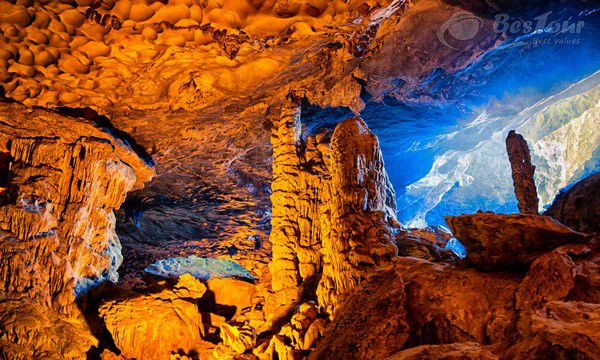 Mới bước chân vào trong động, bạn sẽ có trải nghiệm hoàn toàn khác biệt so với thế giới bên ngoài. Ánh sáng tự nhiên chiếu thắng vào những tảng nhũ thạch tạo nên sự lung linh, tráng lệ hiếm có. Không gia vô cùng rộng lớn khiến du khách choáng ngợp, như thể đang đứng trước đại sảnh thiên nhiên.
