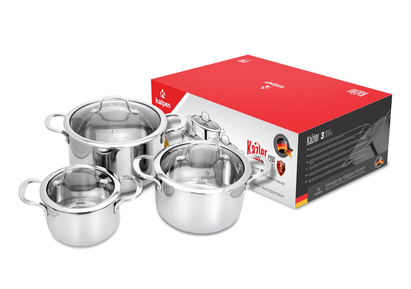 Hầu hết sản phẩm Kalpen đều sử dụng thép không gỉ 304, nhôm nguyên khối hoặc hợp kim cao cấp, giúp tăng tuổi thọ và độ an toàn khi sử dụng. Một điểm sáng của thương hiệu là lớp phủ chống dính ba lớp độc quyền – giúp hạn chế cháy khét, dễ vệ sinh và kéo dài độ bền.
