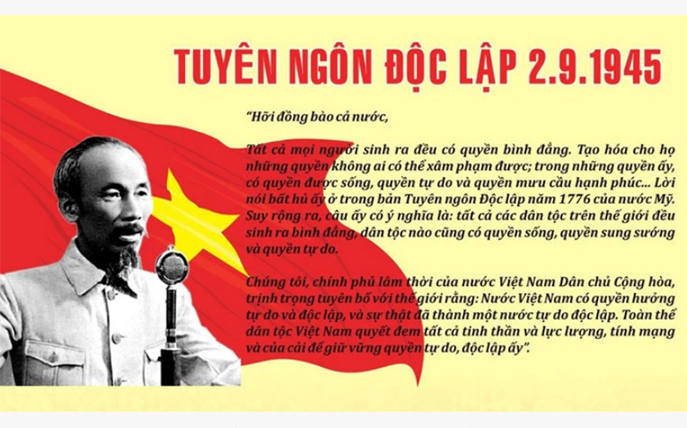 Vào đúng ngày 2/9/1945, tại Quảng trường Ba Đình – Hà Nội, Chủ tịch Hồ Chí Minh đã long trọng tuyên bố trước quốc dân đồng bào và thế giới rằng: “Nước Việt Nam có quyền hưởng tự do và độc lập, và sự thật đã thành một nước tự do độc lập.”