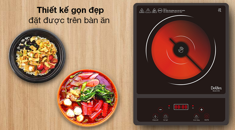 - Chế độ nấu linh hoạt: Bếp hồng ngoại Delites 853 thường có nhiều chế độ nấu khác nhau, từ đun nước, nấu súp, chiên xào cho đến nướng thức ăn. Bạn có thể điều chỉnh mức nhiệt phù hợp với từng món ăn.