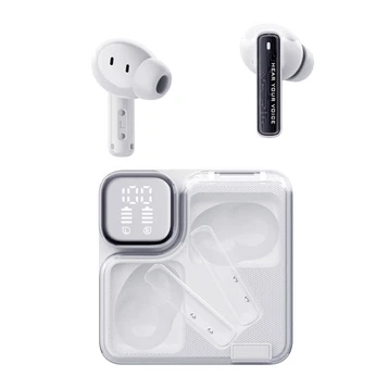 Ấn tượng đầu tiên khi cầm trên tay chính là hộp sạc trong suốt, phô diễn trọn vẹn hai chiếc tai nghe bên trong cùng màn hình LED báo pin nổi bật. Nhà sản xuất cho biết thiết kế này lấy cảm hứng từ phong cách Cyberpunk, và đặc biệt hơn – nó còn đạt giải Vàng tại MUSE Design Awards 2024.